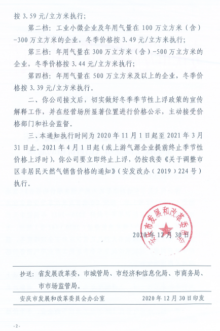 安慶市發(fā)展改革委關(guān)于順價(jià)疏導(dǎo)冬季非居民工商業(yè)用氣價(jià)格的通知(2020)