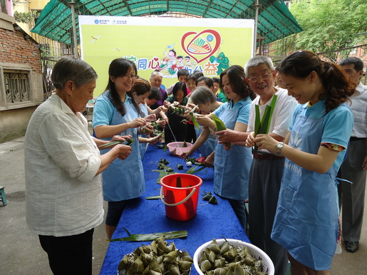 在活動(dòng)現(xiàn)場(chǎng),義工隊(duì)員們與社區(qū)工作人員一起,邊包愛心粽,邊與圍繞在周圍的社區(qū)老人們拉家?!,F(xiàn)場(chǎng)笑聲不斷、其樂融融,充滿溫情暖意?;顒?dòng)中,所用的包粽食材均采用低碳健康食材,旨在宣揚(yáng)傳統(tǒng)裹粽文化的同時(shí),積極推廣低碳的生活理念。300余只粽子在大家的努力下,兩個(gè)小時(shí)就全部包裹完畢。義工隊(duì)員們挨個(gè)將現(xiàn)場(chǎng)包好的愛心粽以及帶來的綠豆糕、鴨蛋等節(jié)日禮品贈(zèng)與社區(qū)孤寡老人、獨(dú)居長(zhǎng)者等有需要的社區(qū)弱勢(shì)群體手上,為他們送去安慶港華燃?xì)獾馁N心和關(guān)愛,送去節(jié)日的慰問和濃濃祝福。