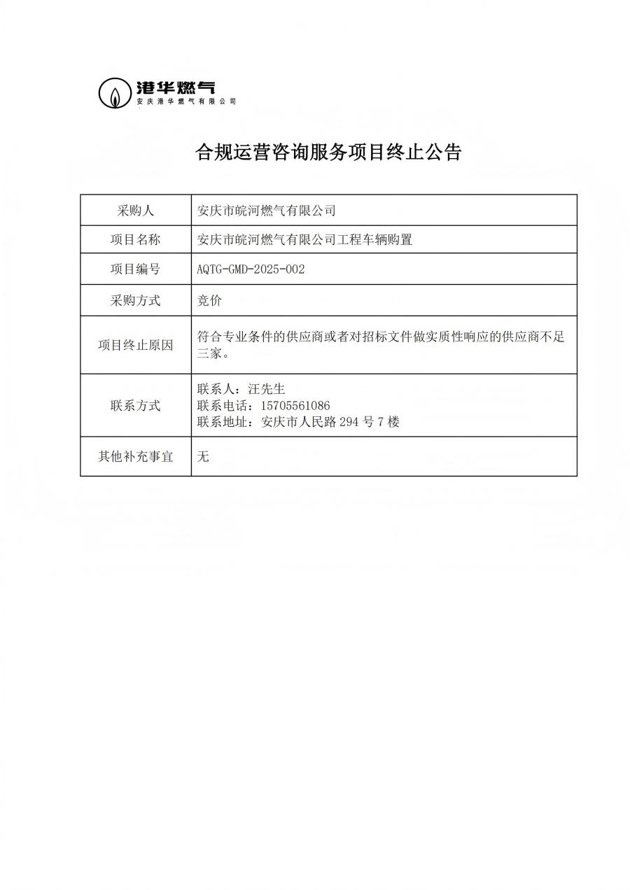 合規(guī)運(yùn)營(yíng)咨詢(xún)服務(wù)項(xiàng)目終止公告