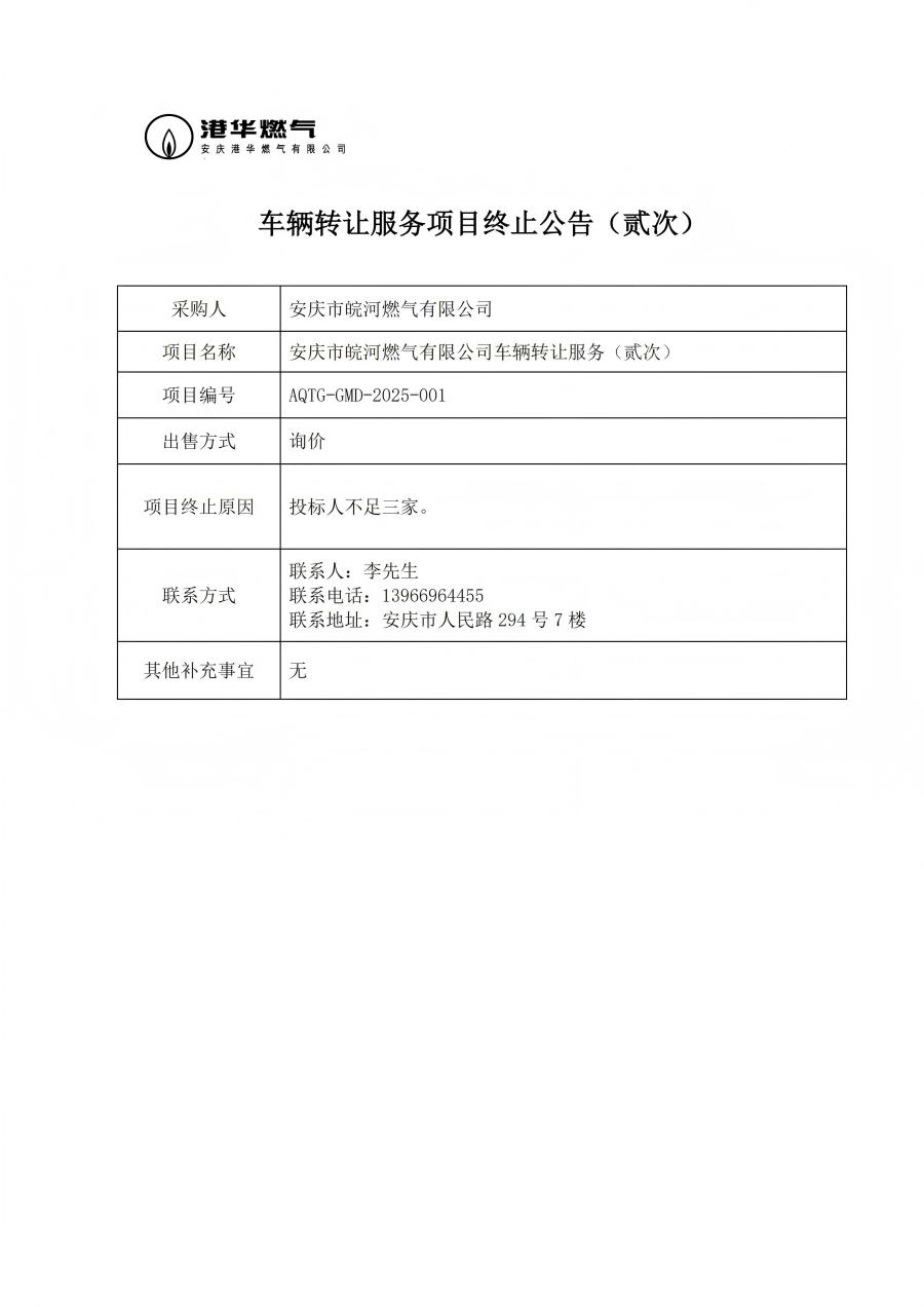 車輛轉(zhuǎn)讓服務(wù)項(xiàng)目終止公告(貳次)