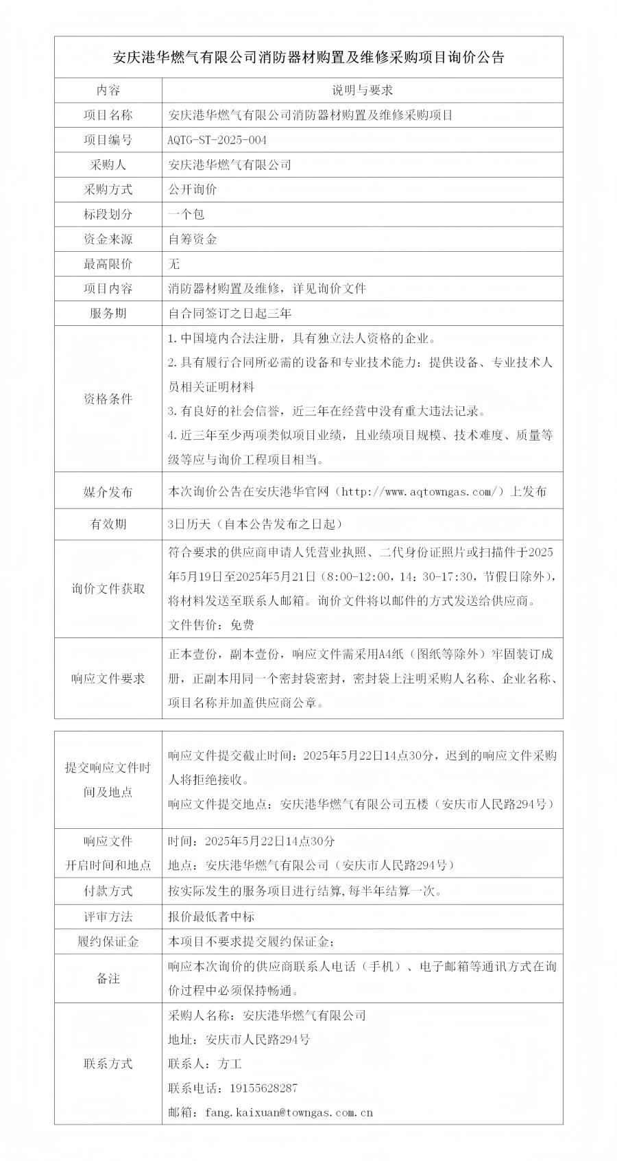 安慶港華燃?xì)庥邢薰鞠榔鞑馁?gòu)置及維修采購(gòu)項(xiàng)目詢(xún)價(jià)公告