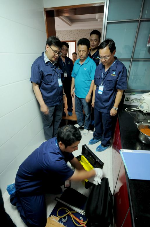 在安慶巡查的第三站——綠地迎江世紀(jì)城小區(qū),主要展示的是小區(qū)戶內(nèi)集中安檢。進(jìn)入小區(qū),映入眼簾的是一排排安檢宣傳、咨詢、安全燃?xì)饩哒故緟^(qū),宣傳展板向居民展示燃?xì)獍踩褂弥R(shí)、燃?xì)馐鹿示炯鞍踩細(xì)饩叩氖褂玫瘸WR(shí),工作人員細(xì)致耐心的解答居民的咨詢,并發(fā)放《燃?xì)饪蛻舭踩脷馐謨?cè)》。陳總裁等集團(tuán)領(lǐng)導(dǎo)跟隨安檢員來到客戶家中,觀看戶內(nèi)安檢的每個(gè)環(huán)節(jié),當(dāng)安檢人員規(guī)范地完成整個(gè)安檢流程后,陳總裁給予了“很好,不亞于香港水平”的高度評(píng)價(jià)。