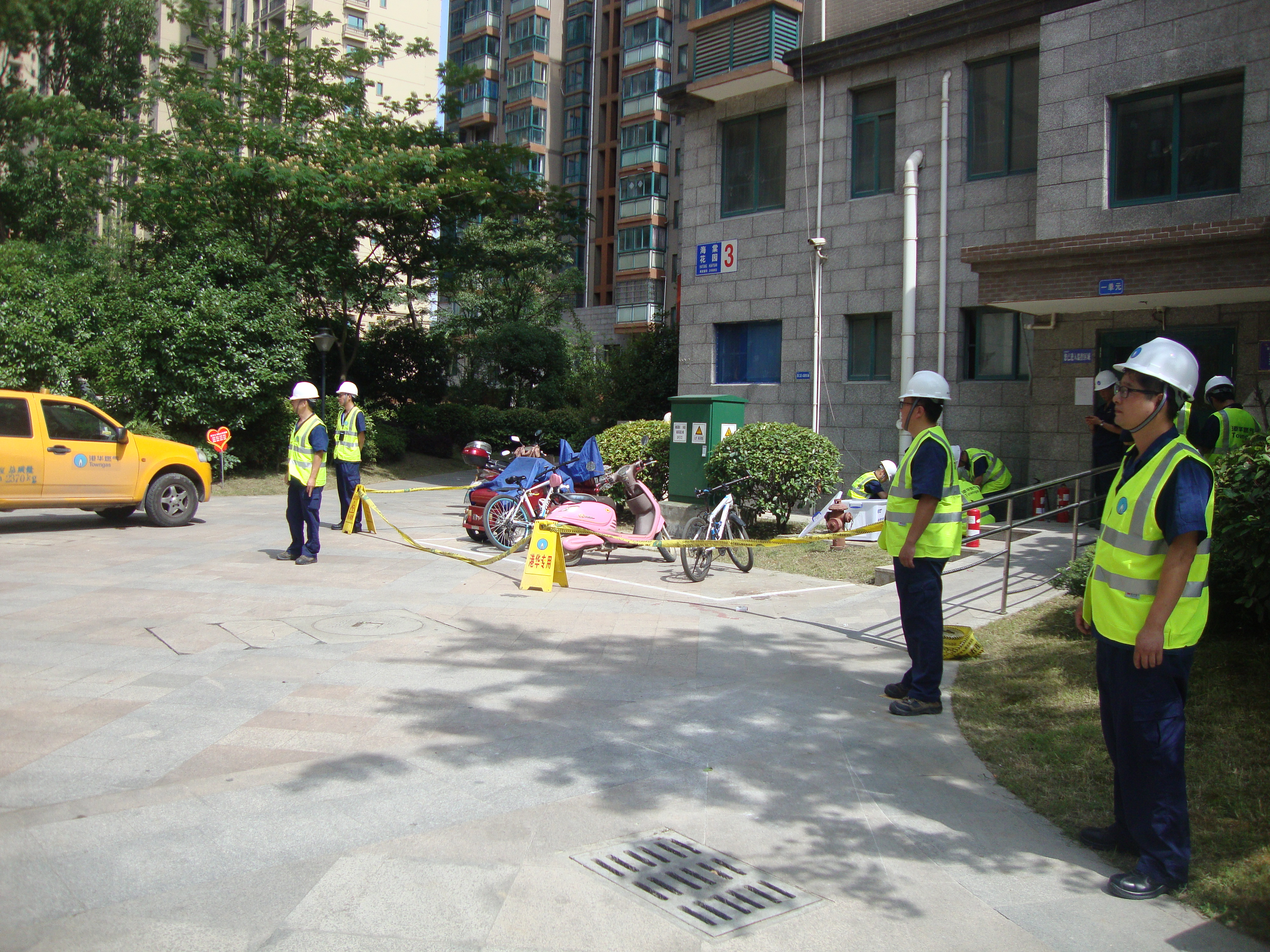 本次演練模擬海棠花園3號(hào)樓燃?xì)?/span>戶外管發(fā)生泄漏險(xiǎn)情。14:40分公司監(jiān)控調(diào)度中心接到用戶報(bào)險(xiǎn)電話后,立即下達(dá)指令要求客戶服務(wù)部搶險(xiǎn)人員立即趕赴現(xiàn)場(chǎng)處置。經(jīng)查看,系地面嚴(yán)重沉降造成補(bǔ)償器拉斷,引起燃?xì)庑孤?/span>,搶險(xiǎn)人員果斷切斷泄漏點(diǎn)前端閥門(mén),并將現(xiàn)場(chǎng)情況通報(bào)給部門(mén)及公司領(lǐng)導(dǎo),啟動(dòng)應(yīng)急響應(yīng),熱線中心短信告知該樓棟燃?xì)饪蛻?/span>、監(jiān)控中心通知公司緊急應(yīng)變小組成員待命。在現(xiàn)場(chǎng),安全警戒組設(shè)置安全警戒區(qū)域,緊急疏散無(wú)關(guān)人員,放置滅火器。搶險(xiǎn)維修組立即進(jìn)入作業(yè)區(qū)域,進(jìn)行修復(fù)。經(jīng)過(guò)應(yīng)急搶險(xiǎn)人員緊張有序的處置,15:30分補(bǔ)償器更換完成,險(xiǎn)情解除。恢復(fù)供氣組進(jìn)行壓力試驗(yàn)合格,上門(mén)檢查,確認(rèn)安全后,通知客戶恢復(fù)正常用氣。